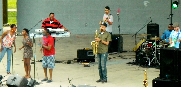 Several hundred people enjoy a Friday evening musical performance by Aftah Party during this year's second Secret City Sounds concert at A.K. Bissell Park. The third concert, on Saturday, May 19, will feature the United States Air Force Band of Mid America with the ensemble Starlifter.