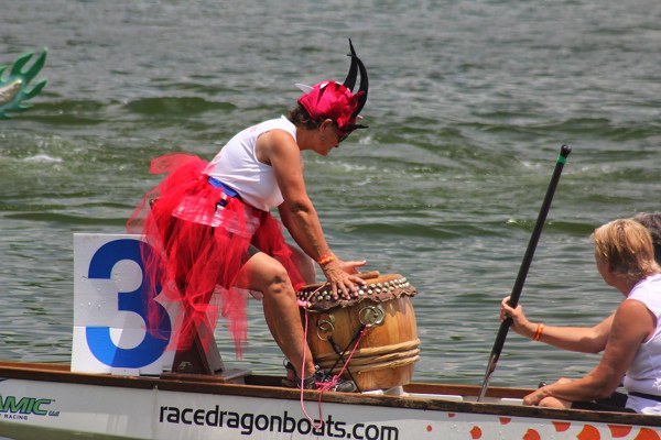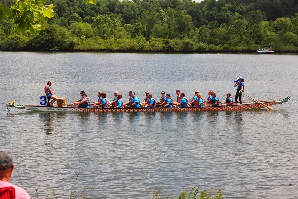 Saturday’s all-day Dragon Boat Festival race was an entertaining competition among teams of 20 people each—18 paddlers, a caller, and a steerer. The teams came from community employers and organizations, some of which signed up to become corporate sponsors of the event.