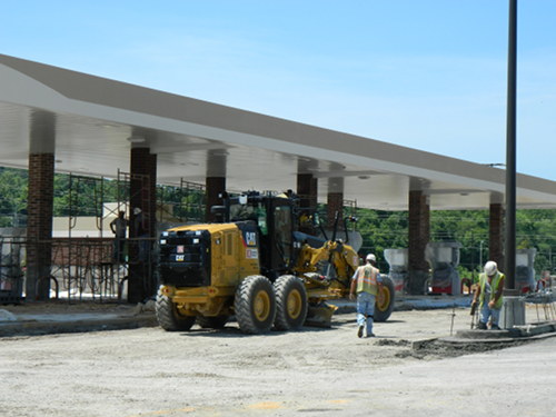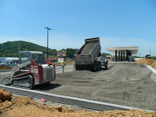 The Westcott Center will include a Kroger Fuel Center. Construction crews work on the parking lot on Saturday.