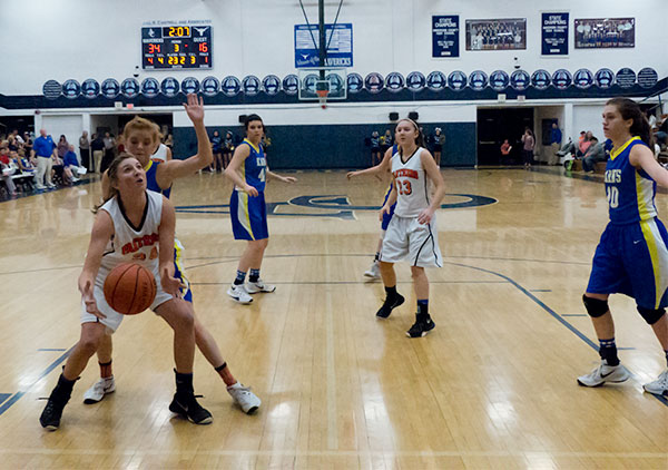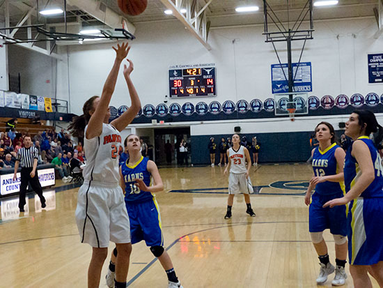Junior wing Kaitlyn Lentz (24) scored 13 points during a 54-28 win over Karns in the District 3-AAA tournament on Friday, Feb. 19, 2016. (Photo by John Huotari/Oak Ridge Today)