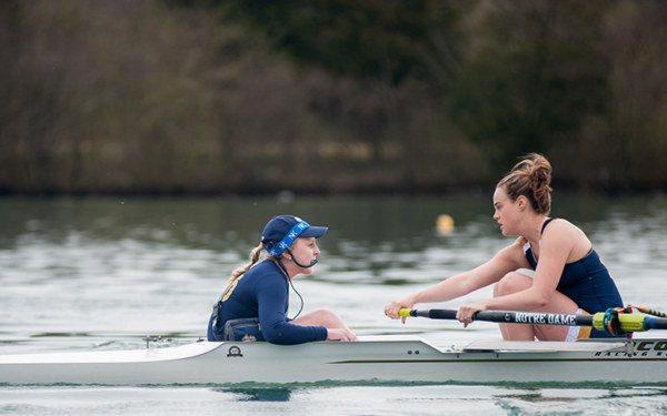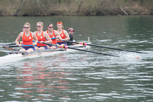 Twelve of the nation’s best NCAA Division I women’s rowing teams competed this weekend in the Cardinal Invitational Regatta in Oak Ridge. Pictured above, a Notre Dame team competes at Oak Ridge Marina on Saturday, March 12, 2016. (Photo by Julio Culiat)