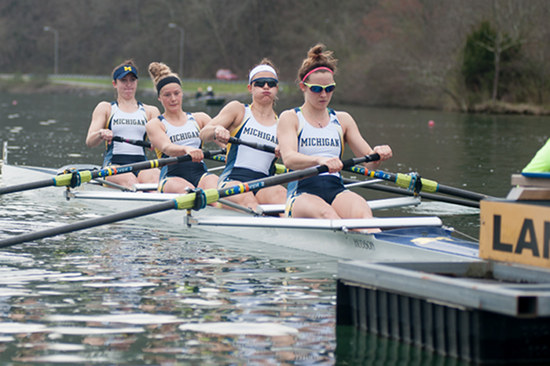 Twelve of the nation’s best NCAA Division I women’s rowing teams competed this weekend in the Cardinal Invitational Regatta in Oak Ridge. Pictured above, a University of Michigan team starts a race at Oak Ridge Marina on Saturday, March 12, 2016. (Photo by Julio Culiat)