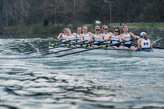 Twelve of the nation’s best NCAA Division I women’s rowing teams competed this weekend in the Cardinal Invitational Regatta in Oak Ridge. Pictured above, a University of Michigan team competes at Oak Ridge Marina on Saturday, March 12, 2016. (Photo by Julio Culiat)