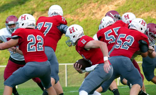 The Oak Ridge Wildcats and Heritage Mountaineers tied 13-13 during first team play in a scrimmage at Blankenship Field on Friday, July 29, 2016, but Heritage outscored Oak Ridge after the second team came in. (Photo by John Huotari/Oak Ridge Today)