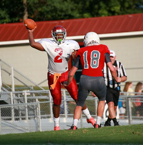 Oak Ridge rising junior quarterback Johnny Stewart (2) is pictured above during a scrimmage against the Heritage Mountaineers at Blankenship Field on Friday, July 29, 2016. (Photo by Luther Simmons)