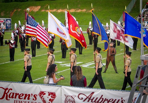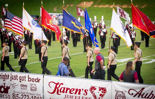 Here are photos by Linda Ripley of the Oak Ridge High School Navy Junior ROTC (Reserve Officers’ Training Corps) Color Guard on Blankenship Field at the Oak Ridge-West football game on Friday, September 15. The photos are used here with Ripley’s permission.