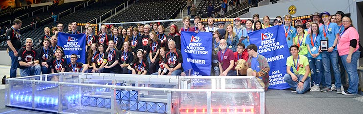 After a regional alliance win at the University of Tennessee in Knoxville on Saturday, March 24, 2018, the Secret City Wildbots robotics team of Oak Ridge, Team 4265, is headed to the World Finals in Houston in April. (Photo by Angi Agle)