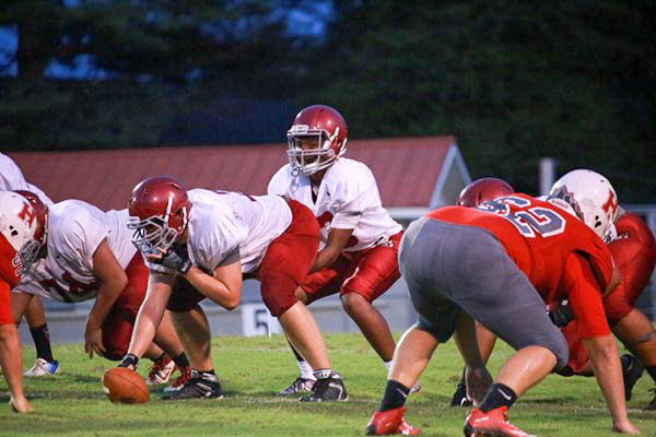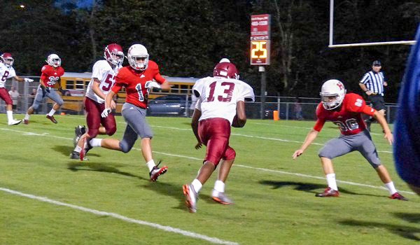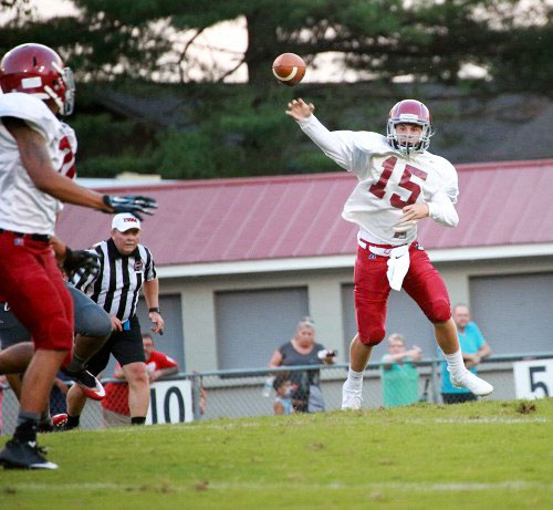 Jefferson Middle School quarterback Mitchell Gibbons (17) threw a 19-yard touchdown pass and scored twice on quarterback keepers on two-point conversions during a 16-12 win over Robertsville Middle School in the City Championship on Blankenship Field on Thursday, Sept. 29, 2016. (Photo by John Huotari/Oak Ridge Today)