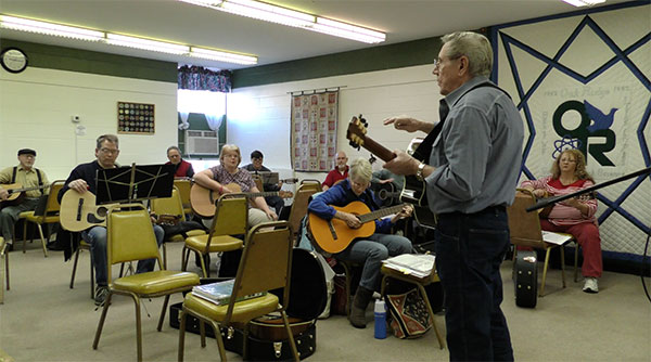 Free guitar lessons for senior citizens will begin with an orientation class on Friday, Jan. 5, 2018, at 10 a.m., at the Oak Ridge Senior Center, which is at the Oak Ridge Civic Center at 1403 Oak Ridge Turnpike. This is a picture of a previous intermediate guitar class. (Photo by City of Oak Ridge)