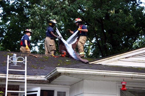 Firefighters Place Tarp on Lasalle Road Home
