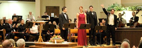 The Barber of Seville Trio performs at the Sept. 28 ORCO Concert. Pictured are Marshall Rollings, Dallas Norton, and Mattia D’Affuso with Conductor Will Burkhart.