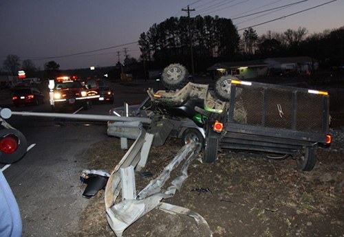 The crash knocked down a railroad crossing signal in Oliver Springs near Edmonds Drive, and the ATV flipped over.