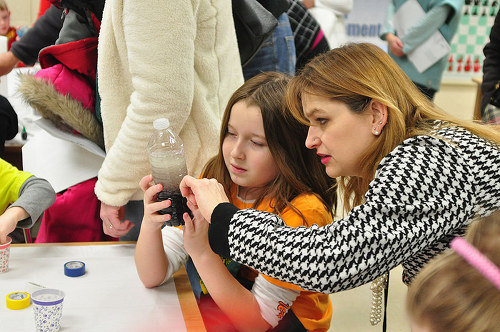 The event involved numerous local sponsors and community groups that helped design and share fun, educational activities for students at Woodland Elementary in Oak Ridge. Kids had the opportunity to learn through robots, Legos, gummy bear catapults, astronomy, spaghetti and marshmallow tower-building competitions, and math code busters. Specifically, Environmental Management employees taught participants how to create their own lava lamps.