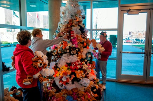 The Y-12 Employee Society launched the teddy bear collection campaign during December. Bears are given to patients during their hospital stay, eventually going home with them. Volunteers decorated the lobby of Y-12’s Jack Case Center with the bears as they collected them.