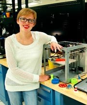 Halls High School Junior McKenna Snyder, pictured at left at DOE’s Manufacturing Demonstration Facility at ORNL with a 3D printer and various 3D-printed items, is the captain of her school’s robotics team and a next-generation engineer.