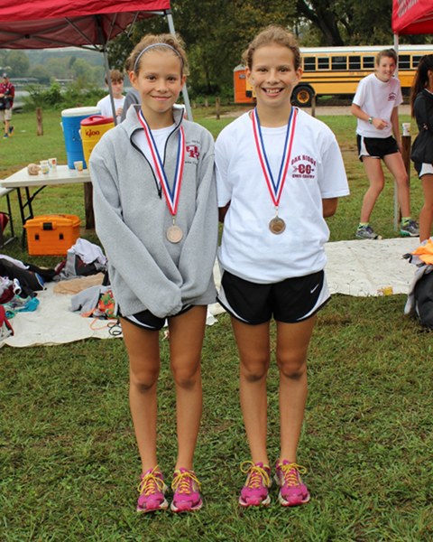 Cross country runners pictured above are, starting at left, Megan Peters of Oak Ridge, 10th place; Esther Gallmeier of Oak Ridge, 9th; Maddie Zawisza of Oak Ridge, 8th; Selena Robinson of William Blount, 7th; Lauren Cole of Maryville, 6th; Aislyn Peacock of Oak Ridge, 5th; Sara Bowden of Maryville, 4th; and Katharina Gallmeier of Oak Ridge, 3rd. (Photos by Nicole Zawisza)