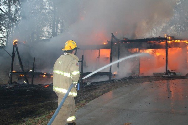 Flames were shooting through the roof of the hilltop home at 309 Holbrook Lane when firefighters arrived, said Stephanie Fox, assistant chief of the Marlow Volunteer Fire Department. Thick smoke billowed high into the air, and a dark plume could be seen as far away as Oak Ridge. Firefighters battled the blaze using what is known as a defensive attack, meaning they didn’t go inside.