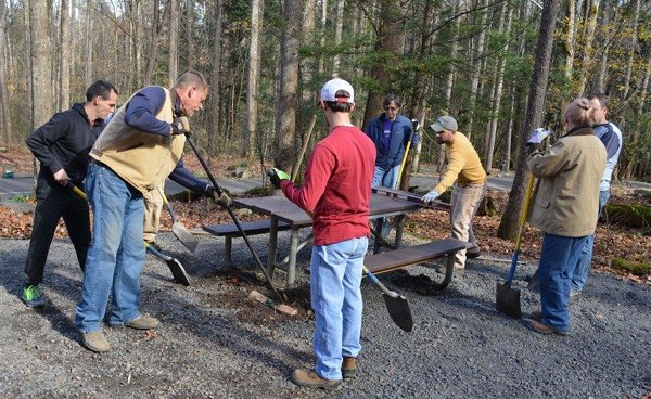 The group performed similar restoration duties last year on Loop A. The volunteers also removed and replaced 10 existing picnic tables from the Cosby Picnic Area Pavilion with new environmentally friendly tables.