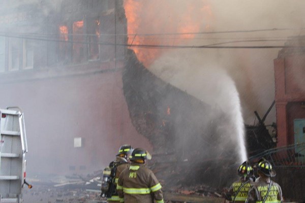 The large building has three stories and a basement, and it has been vacant for 15 years or so, according to spectators.