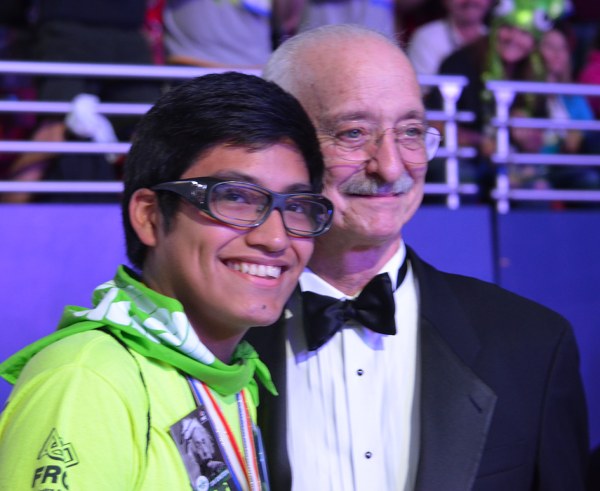 Maddie Buckner, a member of Team 4265 of Oak Ridge High School, is pictured above with Professor Woodie Flowers at the FIRST Robotics Competition Championship in St. Louis, Missouri, on Saturday, April 25, 2015. (Photos by Angi Agle)