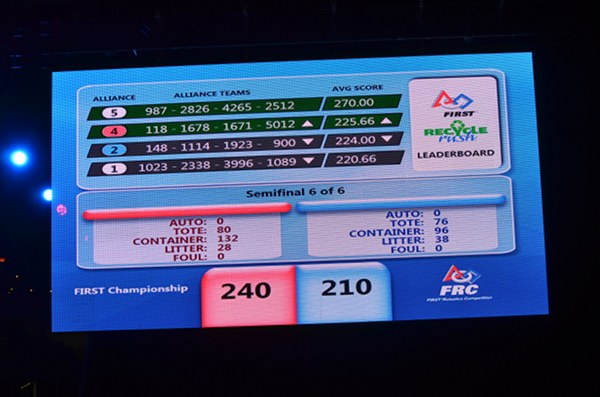 The Wildbots alliance won its first quarterfinal round 235-205 and was ranked number one, a ranking it held headed to the semifinals and finals, Agle said. The alliance won its first round of finals 268-185 and won the Hopper Subdivision.