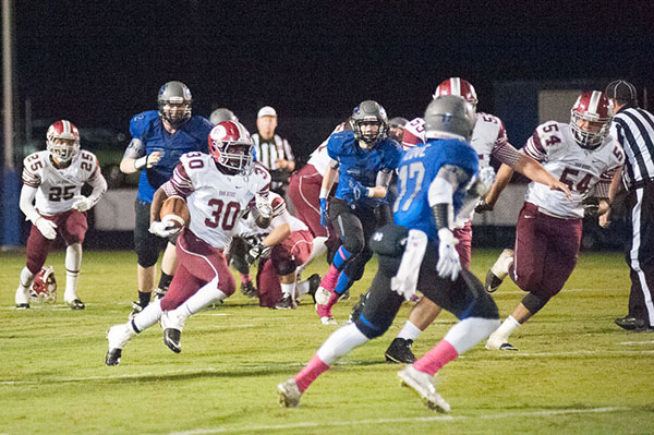 Freshman running back Jordan Graham (30) had a few long runs, picking up 163 yards on three carries during a 56-14 win at Karns on Friday, Oct. 2, 2015. (Photo by Julio Culiat)