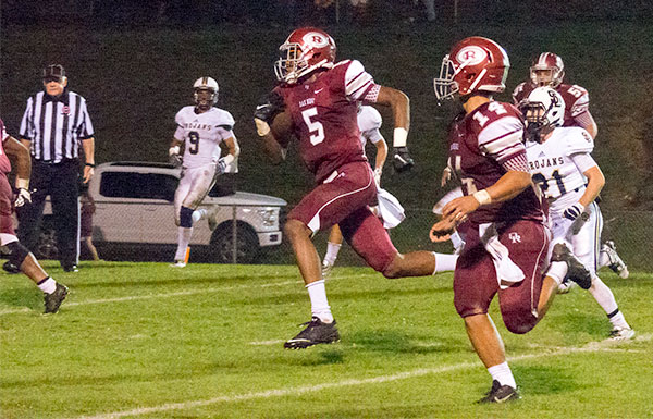 Then, on its next drive, Soddy Daisy came up with its biggest play of the night, a 91-yard pass play from Cooke to Carter on a second-and-nine at the Trojans 9. Carter was behind the defense, and he ran down the right sideline and into the end zone, narrowing the Oak Ridge lead to 38-14 with 4:39 remaining in the game.
