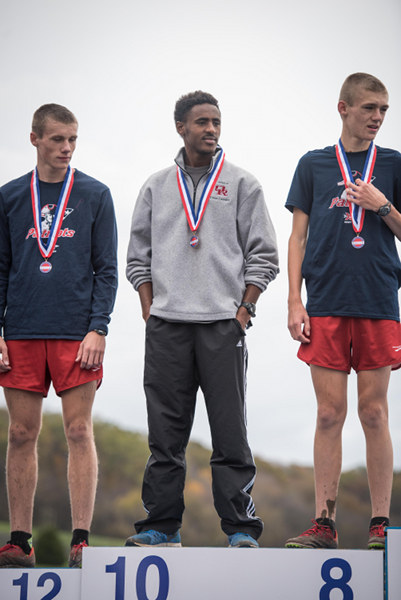 Oak Ridge senior Gashaw Duhamel, center, was the top runner for the Wildcats and finished 10th in the state Class AAA cross country meet in Nashville on Saturday, Nov. 7, 2015. Duhamel was recognized as an All-State runner. (Photo by Adrian Etheridge)