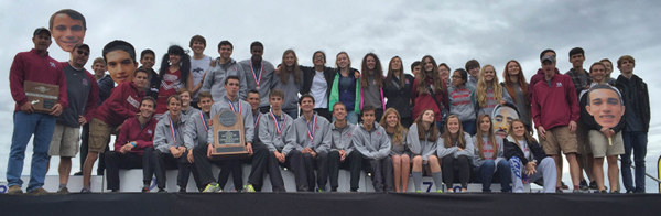 The Oak Ridge High School boys and girls cross country teams on the podium at the Class AAA cross country meet in Nashville on Saturday, Nov. 7, 2015. (Photo by Adrian Etheridge)