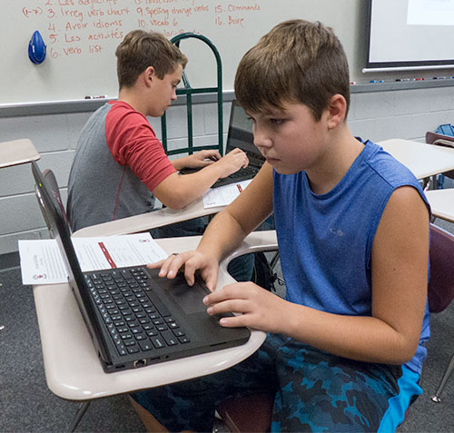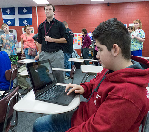 More than 300 convertible laptops were given to Oak Ridge middle school students for educational use in November. About 190 are being used by seventh-grade students at Robertsville Middle School, pictured above, and roughly 130 were distributed to sixth-grade students at Jefferson Middle School. (Photo by John Huotari/Oak Ridge Today)