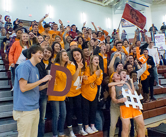The student section celebrates the arrival of University of Tennessee football coach Butch Jones by singing “It’s great to be a Tennessee Vol!” during an Oak Ridge-Gibbs game at Wildcat Arena on Friday, Jan. 29, 2016. (Photo by John Huotari/Oak Ridge Today)