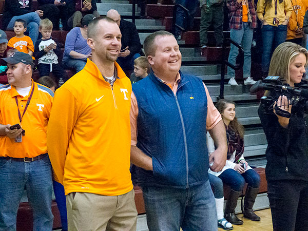 University of Tennessee Volunteers football coach Butch Jones was at the Friday night Oak Ridge-Gibbs basketball game. So was UT wide receivers coach Zach Azzanni.