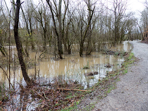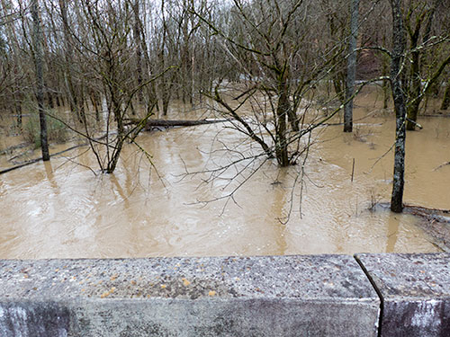 Flooding in Brushy Fork along Bacon Springs Road in Marlow is pictured above on Wednesday morning, Feb. 24, 2016. (Photo by John Huotari/Oak Ridge Today)