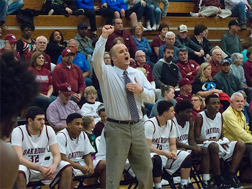 Oak Ridge Coach Aaron Green is pictured above during an 88-62 victory over Karns in the District 3-AAA championship at Anderson County on Tuesday, Feb. 23, 2016. (Photo by John Huotari/Oak Ridge Today)