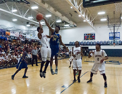 Oak Ridge junior E.J. Bush (2) had a career-high 14 rebounds in an 88-62 victory over Karns in the District 3-AAA championship at Anderson County on Tuesday, Feb. 23, 2016. (Photo by John Huotari/Oak Ridge Today)