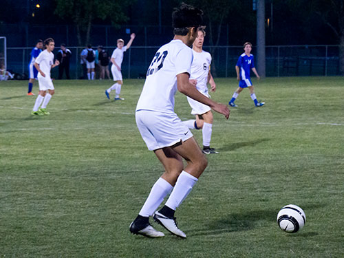 Oak Ridge senior forward Matt Warmbrod dribbles upfield during a 6-0 win over Karns at home on Thursday, April 21, 2016. (Photo by John Huotari/Oak Ridge Today)