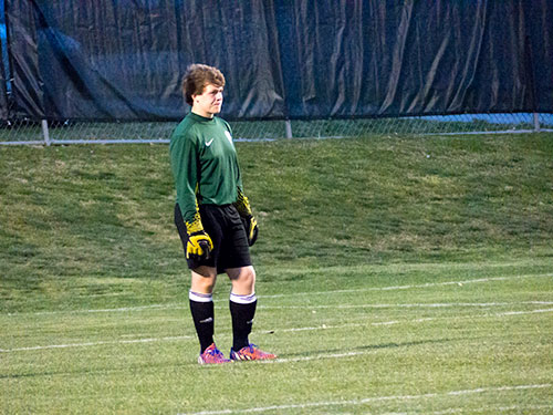 Sophomore Austyn Lincoln, the backup goalkeeper had a good save on a penalty kick by Karns during a 6-0 win over the Beavers at home on Thursday, April 21, 2016. (Photo by John Huotari/Oak Ridge Today)
