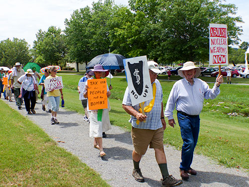 Demonstrators who oppose nuclear weapons and the proposed multi-billion-dollar Uranium Processing Facility at the Y-12 National Security Complex march two miles from Alvin K. Bissell Park in central Oak Ridge to Y-12 on Saturday, Aug. 6, 2016. (Photo by John Huotari/Oak Ridge Today)