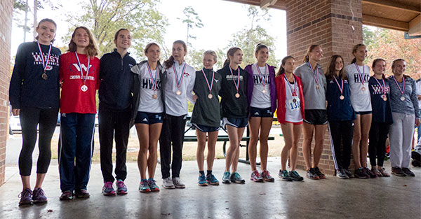 The top 14 runners are pictured above after the girls’ Region 2-AAA cross country meet at Victor Ashe Park in Knoxville on Thursday, Oct. 27, 2016. (Photo by John Huotari/Oak Ridge Today)