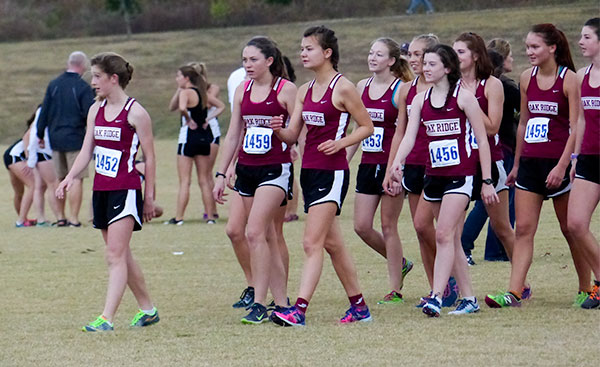 The Oak Ridge team is pictured above before the Region 2-AAA girls’ cross country race at Victor Ashe Park in Knoxville on Thursday, Oct. 27, 2016. (Photo by John Huotari/Oak Ridge Today)
