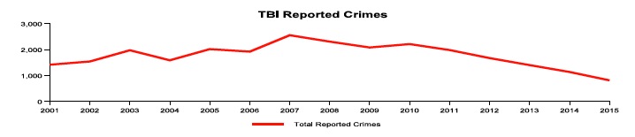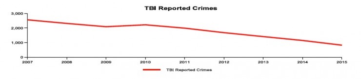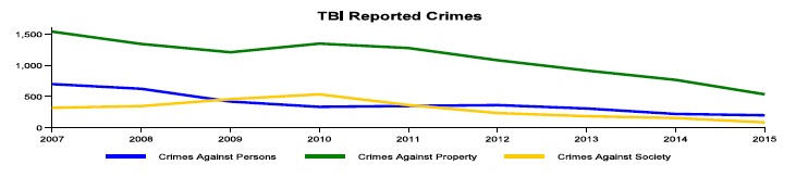 All crime statistics are from the Tennessee Bureau of Investigation. These crime numbers are from reported incidents to the Anderson County Sheriff’s Department and are from the rural, unincorporated areas of the county. Crimes reported to the municipal police departments are not included. All crime statistics have been updated to the latest data from the TBI as of November 2016.