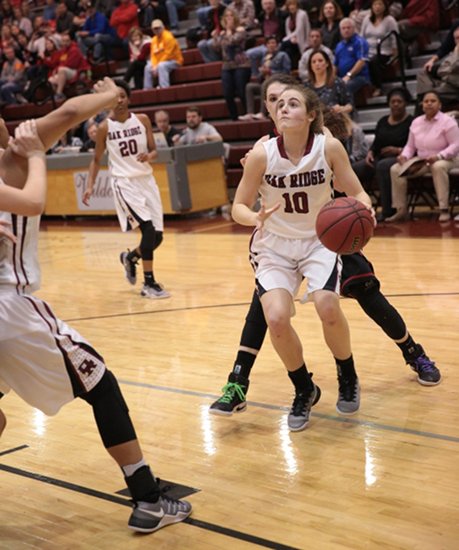 Oak Ridge senior Courtney Ellison (10) drives against Daniel Boone during a 61-44 win for the Lady Wildcats in a Class AAA sectional at Wildcat Arena on Saturday, March 4, 2017. (Photo by Luther Simmons)