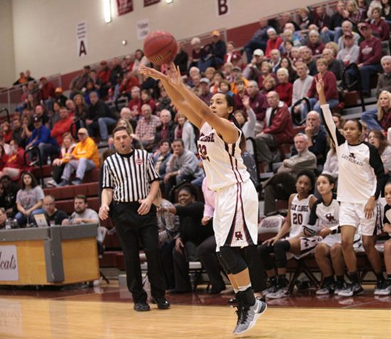 Oak Ridge junior Jaymi Golden (32) shoots from three-point range during a 61-44 Class AAA sectional win over Daniel Boone at Wildcat Arena on Saturday, March 4, 2017. (Photo by Luther Simmons)