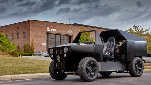 A Printed Utility Vehicle that used 3D printing as part of a project called the Additive Manufacturing Integrated Energy, or AMIE, demonstration, at Oak Ridge National Laboratory is pictured above on Sept. 22, 2015. (Carlos Jones photo courtesy of Oak Ridge National Laboratory, U.S. Dept. of Energy)