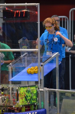 The Secret City Wildbots, Team 4265, were underdogs in the quarterfinals, but they survived to the semifinals where they lost to the number one seed in the First Robotics World Championship in Houston on Saturday, April 22, 2017. (Photo by Angi Agle)