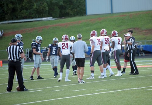 Members of the Oak Ridge Wildcats and Farragut Admirals are pictured before the football game at Farragut on Friday, Sept. 8, 2017. (Photo by Luther Simmons)