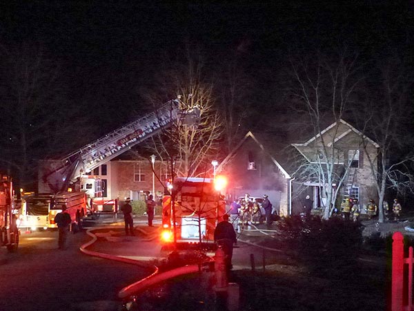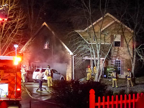 A minor injury was reported and several people escaped from a house fire on Tiffany Place in central Oak Ridge on Monday evening, Feb. 5, 2018, authorities said. (Photo by John Huotari/Oak Ridge Today)