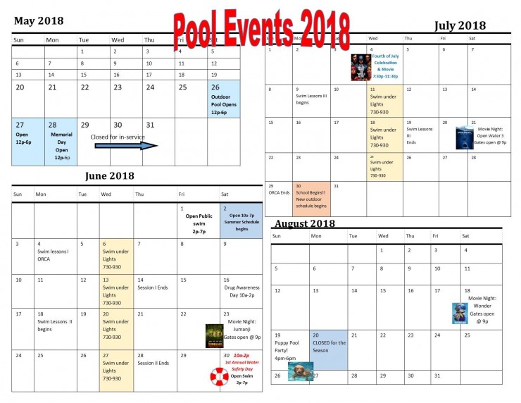 Events are planned throughout the summer, including movie nights, evening swims, swim lessons, Water Safety Day, and the end of season Puppy Pool Party, the press release said. A full calendar of events and additional details can be found online at http://orrecparks.oakridgetn.gov/.