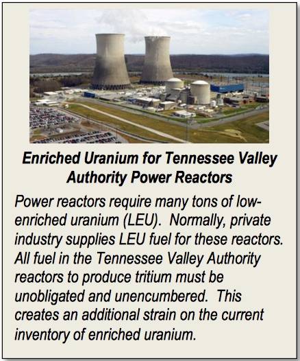 For more information, see this story published in August. It includes more information on producing tritium and enriched uranium sources.