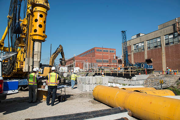 At the future headworks site, the site preparation crews re-routed a steam condensate return line, demolished abandoned concrete structures, and installed two retaining walls, DOE said. The south secant pile retaining wall consists of 65 piles installed at depths of 20 to 40 feet. The north wall consists of 19 piles drilled approximately 16 feet deep.